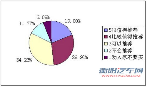 19%“很值得推荐”的车辆中,排名前十的车型是:英朗、新迈腾、新帕萨特、高尔夫6、科鲁兹、POLO、速腾、明锐、东风雪铁龙C5、新骐达。
