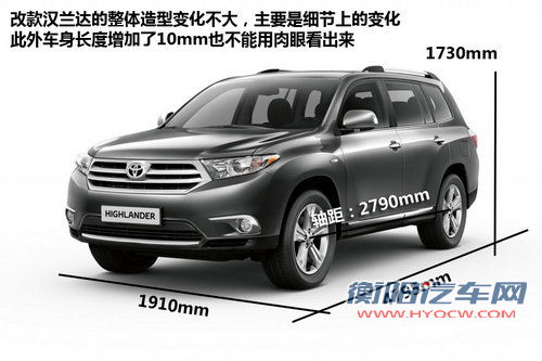 外形上除了这些能看到的细节变化外,改款汉兰达的车身长度比现款增加了10mm,其余数据则不变,长×宽×高的数据为:4795×1910×1730mm,不过用肉眼是看不出变化,上市在丰田的营销话术上应该可以做一做文章。