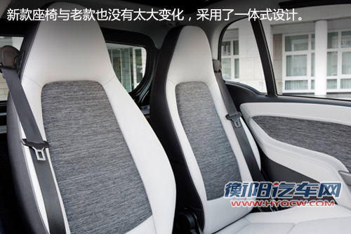 内饰上依然延续了老款的设计风格,简约大方,银色装饰条把整个中控台点缀的不在那么单调。新款座椅与老款也没有太大变化,采用了一体式设计。内饰上唯一的亮点增加了阿尔派导航系统。发动机采用了与老款同样的两种动力组合,1.0L自然吸气、1.0T涡轮增压,与之匹配5速序列式变速器,1.0T车型其最大功率为62kw,最大扭矩为120N·m。随着SMART小改款的上市以及电动版车型的即将引入,消费者也将增添更多选择。