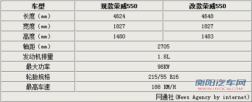 从获得的改款荣威550信息额可以看出,改款550在外观方面进行了较大幅度的改动,车身长度相比现款增加了24mm,而高度却比现款高出了3mm。动力系统上改款依旧使用1.8升引擎。