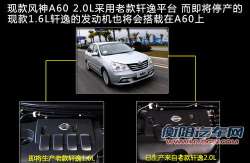 现款风神A60采用的就是老款轩逸的平台,而现款A60只有2.0L的车型,此次轩逸的全新改款将会停止老款轩逸1.6L车型的生产,所以接下来A60车型将会增加1.6L排量的车型,借此丰富风神车型。