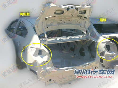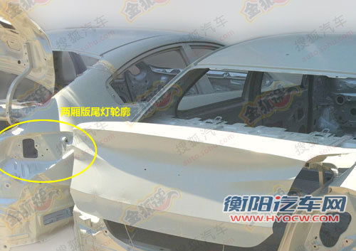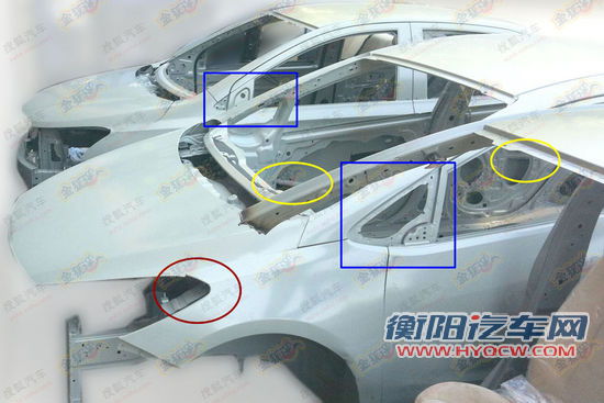 通过白车身我们还可以看到,两厢版和三厢版的前车门内部都安装了圆管状的防撞梁(图中黄圈内),直径目测在20毫米左右,后车门内部则只是焊接了加强筋,没有使用独立的防撞梁。