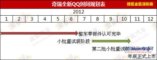 首先,资料告诉我们奇瑞全新QQ3将会在何时正式与消费者见面。搜狐汽车根据这份资料的信息,整理出了一份进程表,如下图所示。