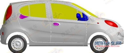 车头大灯的轮廓较为怪异,与现销版QQ的圆形完全不同,本身也呈现出一定的不规则状,当然这是通过专利图体现的边缘细节,实车对比,可以发现不规则的原因是由于灯罩类似一个气泡状态。