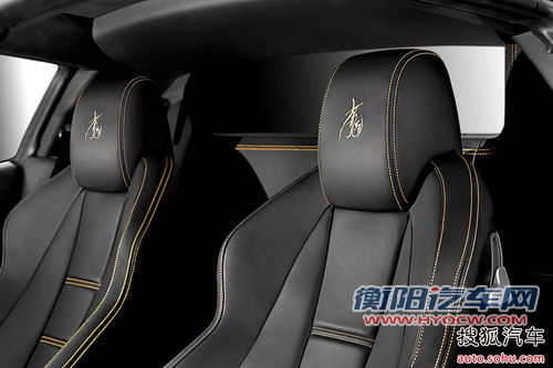 内饰细节:458 Italia中国限量版内部设计的细节和工艺上处处体现了独具匠心的“龙马”主题和对中国文化的礼赞。汉文字作为五千年中国文化的精髓,是历史和文明的传承。艺术创作的金色写意书法体 “龙马”图案被精细地绣制在车内座椅的头枕位置,以简体中文呈现的引擎“启动”按钮及专属于20辆限量版跑车的特制纪念铭牌与车内其他细节相得益彰。