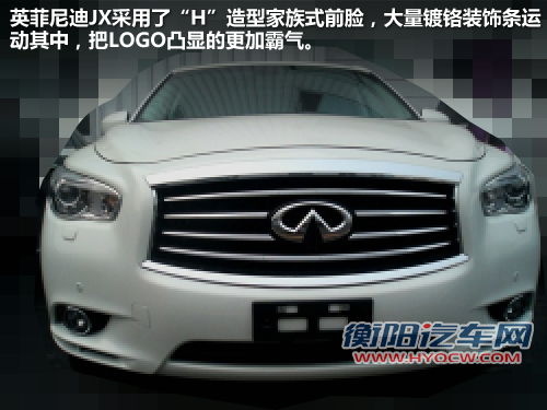英菲尼迪JX采用了“H”造型家族式前脸,前进气格栅大量的镀铬装饰运用其中,把LOGO凸显的更加霸气。这样设计的格栅不仅能够带来极强的视觉冲击感,还可以带来非常清晰的线条感。