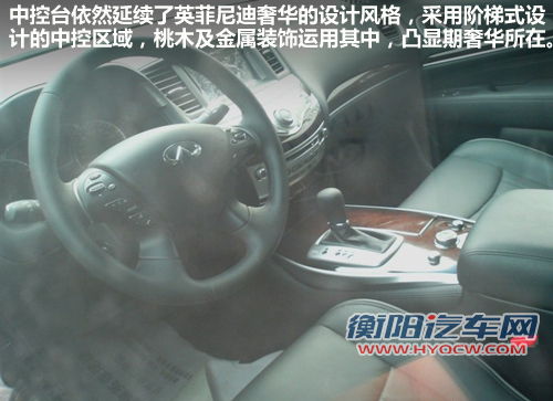 英菲尼迪JX中控台依然延续了射虎的设计风格,采用阶梯式设计的中控区域,除了大面积使用高档皮质外,桃木及金属装饰也运用其中,此外,高配车型还将配备全景天窗,凸显英菲尼迪JX的奢华所在。
