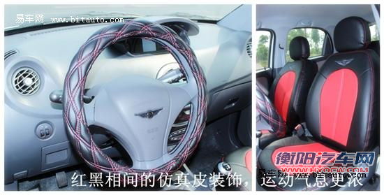 其内部配备了红黑相间运动仿皮座椅与方向盘套,尤其是造型非常另类的方向盘套,非常乍眼。
