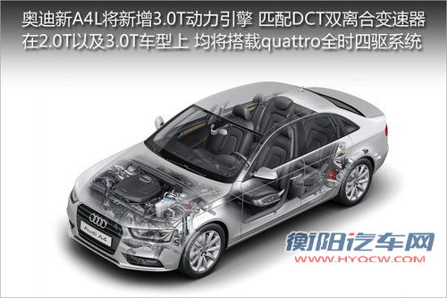新A4作为中期改款车型,外观上并没有巨大的改变。极具家族特征的单体式六边形进气格栅始终如一,仅前大灯造型、雾灯样式以及尾灯有所改变,细节的变化令前脸更为动感时尚。同时新A4还将在2.0T及新增的3.0T车型上配备quattro全时四驱系统,并且还将在3.0T车型上匹配DCT双离合变速器。
