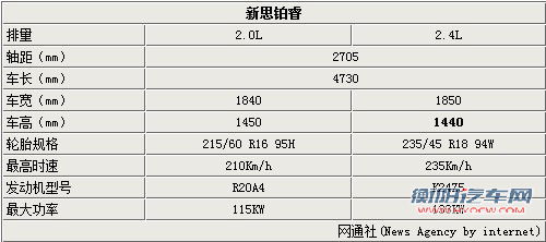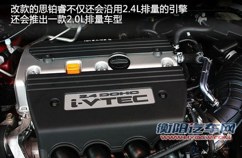 思铂睿本次改款最大的重点是将要增加2.0排量的车型,在之前网通社与东风本田公关系孙云鹤先生沟通时也表示:“思铂睿将进行改款推出2.0车型,于今年9月上市。”推出2.0L引擎是本田小排量战略的主要表现,而对于思铂睿车型来讲将更好的提升性价比。而在车身参数上2.0L车型与现款保持一致,2.4L车型在高度上下调了10mm,这将使思铂睿更加其突出运动定位。