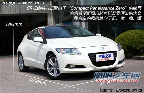 百公里油耗低。CR-Z车身尺寸为4080*1740*1395mm,轴距为2435mm,采用前麦弗逊后多连杆的悬挂设计,车重仅有1195公斤。由于车身重量轻,加上混合动力驱动,据消息,新车的综合油耗仅为4L/100km。