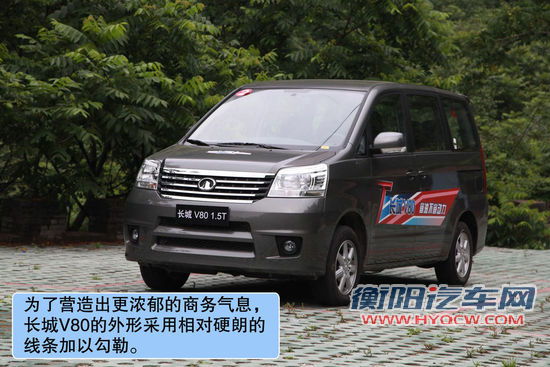 外观设计上市,1.5T版本的V80与之前上市的车型并无太大差异,整体以方正的厢式造型为主,为了营造出更浓郁的商务气息,长城V80的外形采用相对硬朗的线条加以勾勒,这与外形圆润的其他自主MPV车型形成了鲜明的对比。
