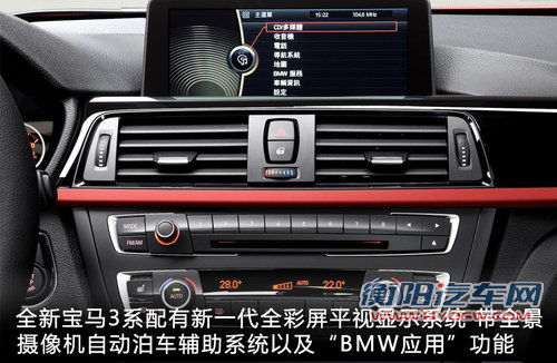 全新BMW 3系的创新装备也是同级别中最多的,包括最新一代的全彩屏平视显示系统、带全景摄像机、自动泊车辅助系统以及“BMW应用”功能,此功能让用户可以将iPhone手机连接到汽车上,通过iDrive系统在车内轻松操作诸如微博和开心网等互联网功能。