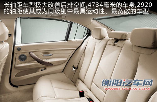 全新BMW 3系同时向中国消费者提供标准轴距和长轴距产品。在保持家族运动特征的同时,长轴距车型极大改善了后排空间和舒适性,4734毫米的车身和2920毫米的轴距使其成为同级别中最具运动性同时最宽敞的车型。重新设计的后排座椅、中央扶手、灯光控制以及侧面和后窗遮阳帘等配置体现了对后排乘客的关注。双车齐发,满足了中国消费者多样化和个性化的需求。