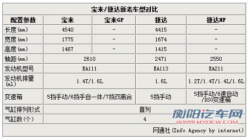捷达NF给我们带来的更多是惊喜,从外观到动力系统,发生了巨大的变化。新捷达NF将使用全新的EA211发动机,并搭载1.2T/1.4T涡轮增压和1.4/1.6升自然吸气共四款发动机,一改现款只有1.6L排量的单调,动力选择相当丰富。变速箱方面,捷达NF除了会匹配五速手动和六速自动变速箱之外,部分高配车型还有望搭载DSG变速箱。宝来GP由于是现款宝来的小改款车型,所以动力方面没有改变,仍然保留了1.4T和1.6L发动机,与之匹配的还是5速手动变速器、6速自动和7速DSG双离合变速器。