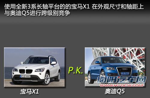 宝马3系上一代车型采用的代号为E90的平台,而宝马X1也同样出自这一平台,轴距均为2760mm。由于新3系的上市,宝马在这一平台的车型只有X1,而X1已经在国内生产且价格进一步下探,而奥迪Q5车型在国内的热销导致宝马X1无论在尺寸上还是动力上均无法与之相抗衡,致使X1销量远不如Q5。而能够与Q5抗衡的BMW X3则由于进口身份导致价格居高不下。