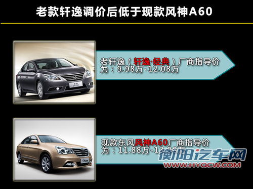 老款轩逸调价后 低于现款风神A60车型
