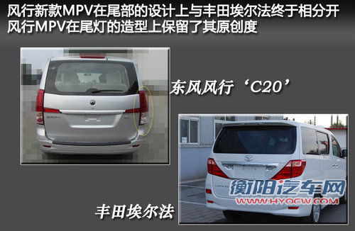 风行新MPV在外形上与丰田豪华MPV埃尔法基本相似,从网通社获得的谍照可以看出,风行新MPV的车身线条埃尔法有着异曲同工之妙,后门均为侧滑式开启方式。从前脸上看,风行新MPV与丰田埃尔法除了在底部和雾灯处的变化,可以说完全相同,相似的外观将使风行新MPV会有着不错的卖相。