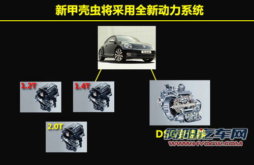 新款甲壳虫较现款变化了不少,其中动力系统的变化时最大的。在发动机方面,将现款甲壳虫的1.6T/1.8T/2.0L换为1.2T/1.4T/2.0T,此举将更有效地利用燃料。此外,大众汽车首次将6速和7速DSG双离合变速器载入甲壳虫车型,这点在之前的车型中是没有的。