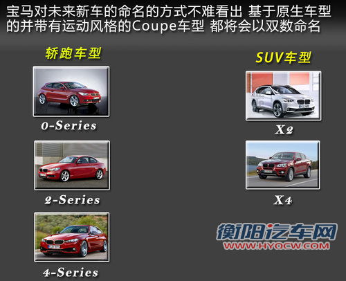 从宝马0系、2系的命名规则不难看出,宝马全新车型的命名方式都会以双数命名,比如2系为1系的三厢轿跑版、4系为3系的轿跑版等等,SUV车型均也如此,而这些车的特点全部为带有轿跑风格的设计理念。在同一平台下开发将使宝马大幅降低新车的研发成本。