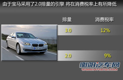 宝马推出手挡不仅可以给消费者多种选择的车型,在消费税上的降低也会使价格更具优势,2.0排量的车型比3.0排量的车型消费税率降低3%,这也将使宝马5系手动版拉低了入门门槛起到作用。虽然5系使用了2.0排量的引擎由于有着涡轮增压的压榨,在动力上并不弱于3.0升6缸车型,高功率版马力达到了242马力,推动5系也会相对轻松,在保证了动力损失较小的情况下,价格也更具优势 .