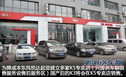 上图为东风悦达起亚K5专卖店实体店(专卖店只提供车辆销售服务设售后服务区),而在今年年底国产的起亚K3车型将会与K5同在专卖店销售,网通社记者走访了北京地区的K5专卖店后得知:专卖店除了销售K5车型外,未来还将会引入K3等车型。