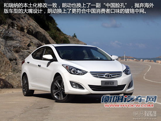和瑞纳的本土化修改一致,朗动也换上了一副“中国脸孔”。抛弃海外版车型的大嘴设计,朗动换上了更符合中国消费者口味的镀铬中网,而这一中网设计,也与瑞纳、悦动保持一致,组成现代的中国化家族脸谱。横式格栅搭配新设计的雾灯区,朗动前脸显得时尚且大气,少几分个性却能满足更多用户的审美需求。