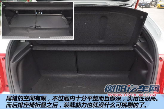 尾箱的空间有限,不过厢内十分平整而且够深,实用性很高。而后排座椅折叠之后,装载能力也就没什么可挑剔的了。