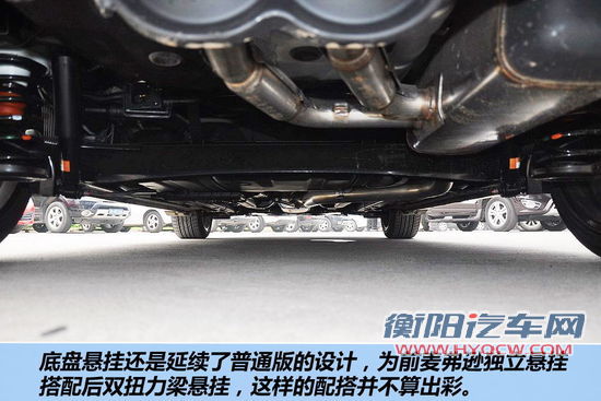 底盘悬挂还是延续了普通版的设计,为前麦弗逊独立悬挂搭配后双扭力梁悬挂,这样的配搭并不算出彩。