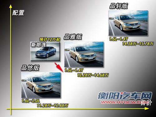 现款朗逸共分为品悠、品雅、品轩三大配置车型,价格上11.28万~15.78万,使消费者可供选择的区间十分详细,而全新朗逸在取消了2.0L排量后,其与品轩的1.6L~1.4T的价格会基本相同,而配置上的升级也会带来售价的相应上涨,相信预计12万的起售价格将会吸引到大批消费者。