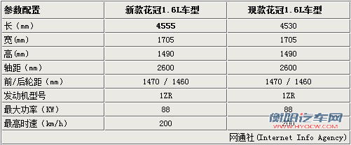 新花冠参数曝光 车长增加