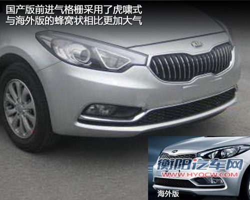 从曝光谍照中我们不难看出,国产版的K3相比海外版更具时尚动感气息,同时蜂窝状进气格栅被国产版的虎啸式所取代,国产版并带有镀铬装饰条,整体给人一种霸气十足的味道,修长的泪眼式前大灯并带有透镜,在造型上极具视觉冲击力。