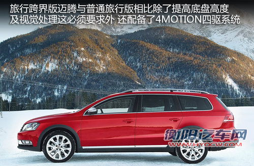 迈腾Alltrack与迈腾旅行相比车身高度增加了34毫米,这将使迈腾Alltrack有着与轿车截然不同的路面通过性,且搭载有大众4MOTION四驱技术。为了更好的诠释跨界这一含义在车身外观四周加入了防擦条的处理。