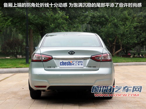尾部造型相比车头沉稳了一些,不过从细节上依旧可以看出奔腾B90时尚的设计,运用备厢顶端的拐角,从而打造出了更富有动感的小折线,也起到了画龙点睛之笔的作用。尾灯的设计与上代奥迪A6L有些神似,只是末端显得更为狭长一些,所配备的LED光源在夜间可以起到更为安全的作用。