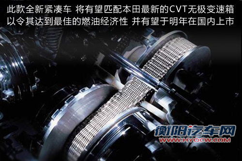 在新车的动力方面,因产自飞度平台其将可能搭载与锋范相同1.5升和1.8升两款自然吸气发动机。而针对新车型在传动系统方面,广汽本田销售本部高层内部人士在接受网通社采访时表示:目前广汽本田CVT变速器的研发工作都已经基本完成,在明年就可以搭载在新车型上。而这款紧凑型车,便有望先期搭载无级变速器,已达到更高的燃油经济性。结合先前宣布的本田新车发展策略来看,其很有可能最快于明年发布亮相。