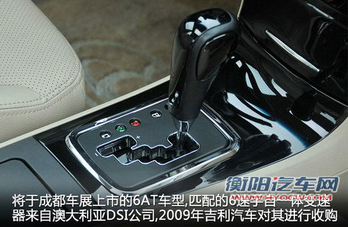 即将在成都车展上市的“升级版”车型,其匹配的6速手自一体变速器是来自澳大利亚DSI公司。早在2009年吉利公司就将澳大利亚DSI公司收购,当时DSI作为全球第二大变速器生产商,产品分别为4速和6速自动变速器,当时生产产品提供给福特、克莱斯勒及韩国双龙等国际知名汽车公司的旗下车型中。此外网通社获悉未来DSI公司还将研发8速自动变速器、DCT双离合变速器及CVT无级变速器,相信未来将会有更先进的变速箱配备于吉利旗下车型当中。