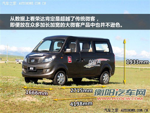 海马福仕达荣达整车尺寸为4198/1666/1933mm,轴距达2715mm,其内部装载空间有4270L。另外,该车采用的加厚纵梁、增设更多加强筋的两纵十一横底盘设计,且与宽尺寸轮胎搭配下,使其载货重量高达765Kg。