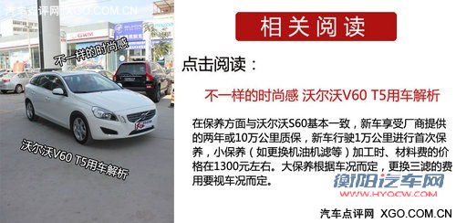 在保养方面与沃尔沃S60基本一致,新车享受厂商提供的两年或10万公里质保,新车行驶1万公里进行首次保养,小保养(如更换机油机滤等)加工时、材料费的价格在1300元左右。大保养根据车况而定,更换三滤的费用要视车况而定。