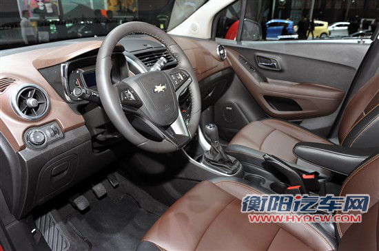 从侧面看车身较短较高,车顶有银色的行李架。使用五辐铝合金轮毂,配备的是马牌轮胎。中控台采用棕色内饰,雪佛兰家族的三辐运动方向盘,方向盘左右两侧有多功能按键。