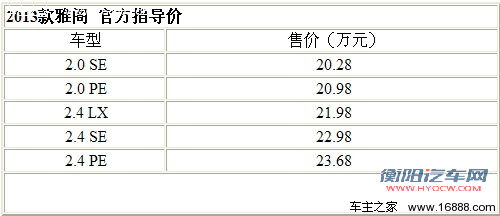 日前,广汽本田2013款雅阁正式公布价格,新车共推出5款车型,售价区间:20.28-23.68万元。