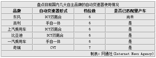自主品牌变速器一览 仅少数使用双离合技术