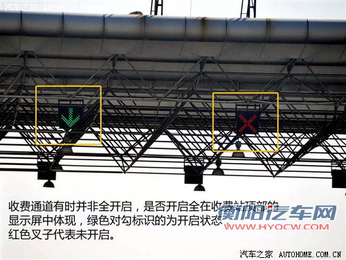 在车流量不大的情况下,收费站的收费窗口并不会全部打开,是否开启信息全在收费站顶部的显示屏中体现,绿色对勾标识的为开启状态,红色叉子代表未开启,大家应该提前观察后做出判断,以免驶入未开启通道,给自己造成不便。