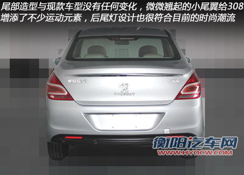 尾部造型与现款车型同样没有任何变化,整体造型依旧时尚动感、极具法国浪漫气息。C字形尾灯也很符合时下流行潮流,微微翘起的小尾翼给东风标致308增添了不少运动元素,而谍照中的车型并没有配备倒车雷达。