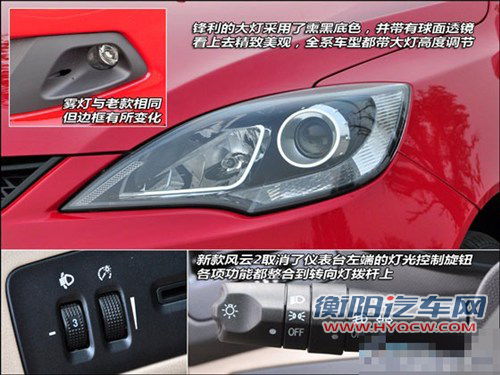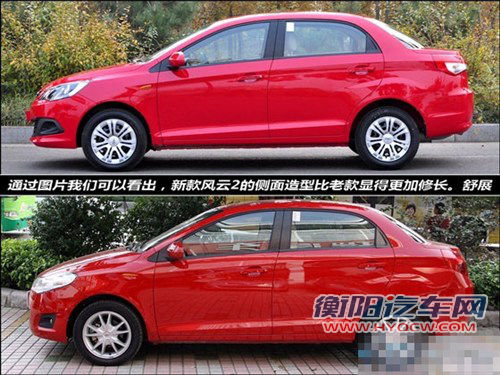 2013款风云2重点对外观和内饰进行了改进,车头部分,新款风云2线条更加锋利硬朗,黑色上下格栅与引擎盖棱线透出很强的力量感。车尾部分新款风云2采用了时下流行的横置尾灯,同时保险杠的造型也更加简洁明快,整体感觉更加大气协调。受首尾造型变化的影响,新款风云2的侧面造型也比老款看上去更加修长,舒展,不再像老款那样生硬。