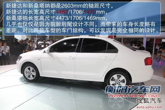 2.外观与尺寸:新捷达和新桑塔纳轴距尺寸相同,仅前部设计不同造成尺寸差异