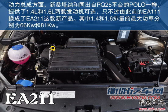 即便是与现有的其他大众车型,新捷达和桑塔纳仍然有动力系统方面的优势。EA211发动机的最大不同就是动力提升和油耗降低,型号CKA的1.4L机型最大功率66kW,型号CPD的1.6L机型最大功率81kW,比起目前POLO车型1.4L和1.6L发动机的63kW、77kW峰值功率均有明显提高。另外MPI技术的新款发动机采用全铝构造后,整机重量降低了16kg,油耗也比EA111机型降低了8~10%。