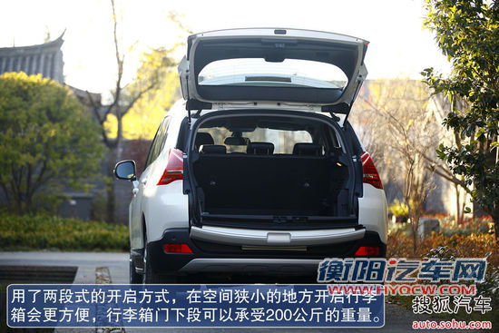 东风标致3008尾箱门分上下两部分开启,在有限空间及个性需求时非常实用、方便。下尾门最大承重200公斤,闲暇时还可以找个公园开启尾门坐上去读书、看风景,感受一下户外空气。