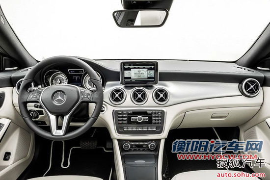 由于定位年轻客户,进入CLA的车内就能深刻的体会到时尚的气息,大量金属饰板的存在极大的提高了新车的内饰档次。和现在主流设计方法不同的是,奔驰CLA的中控区域并没有采用过多的一体化设计,相反则是以看似杂乱的分体式布置来分割功能区。首先独立的圆形出风口就独立于中控区存在,通过饰板形成一个专属于出风口的整体。出风口上方布置的悬浮式液晶显示器同样对于提升内饰的立体感做出了不小的贡献。配色方面则以米白色和黑色两种颜色选择来营造不同的氛围。