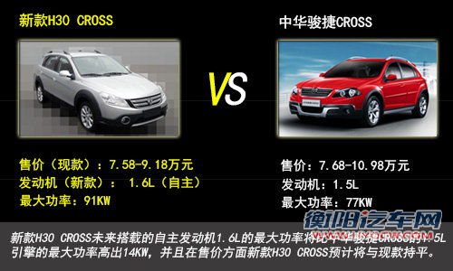 新款H30 CROSS上市后将与中华骏捷CROSS展开竞争,在引擎方面,新款H30 CROSS未来搭载的自主发动机1.6L的最大功率将比中华骏捷CROSS的1.5L引擎的最大功率高出14KW,并且在售价方面新款H30 CROSS预计将与现款持平。