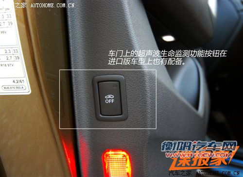 此外,在车门版上我们同样发现了超声波生命监控功能按钮,启用这项功能之后锁车,若车内有人则车辆会发出警报。一方面可以防盗,另一方面也可以防止小孩被无意中被锁在车内,引发安全隐患。